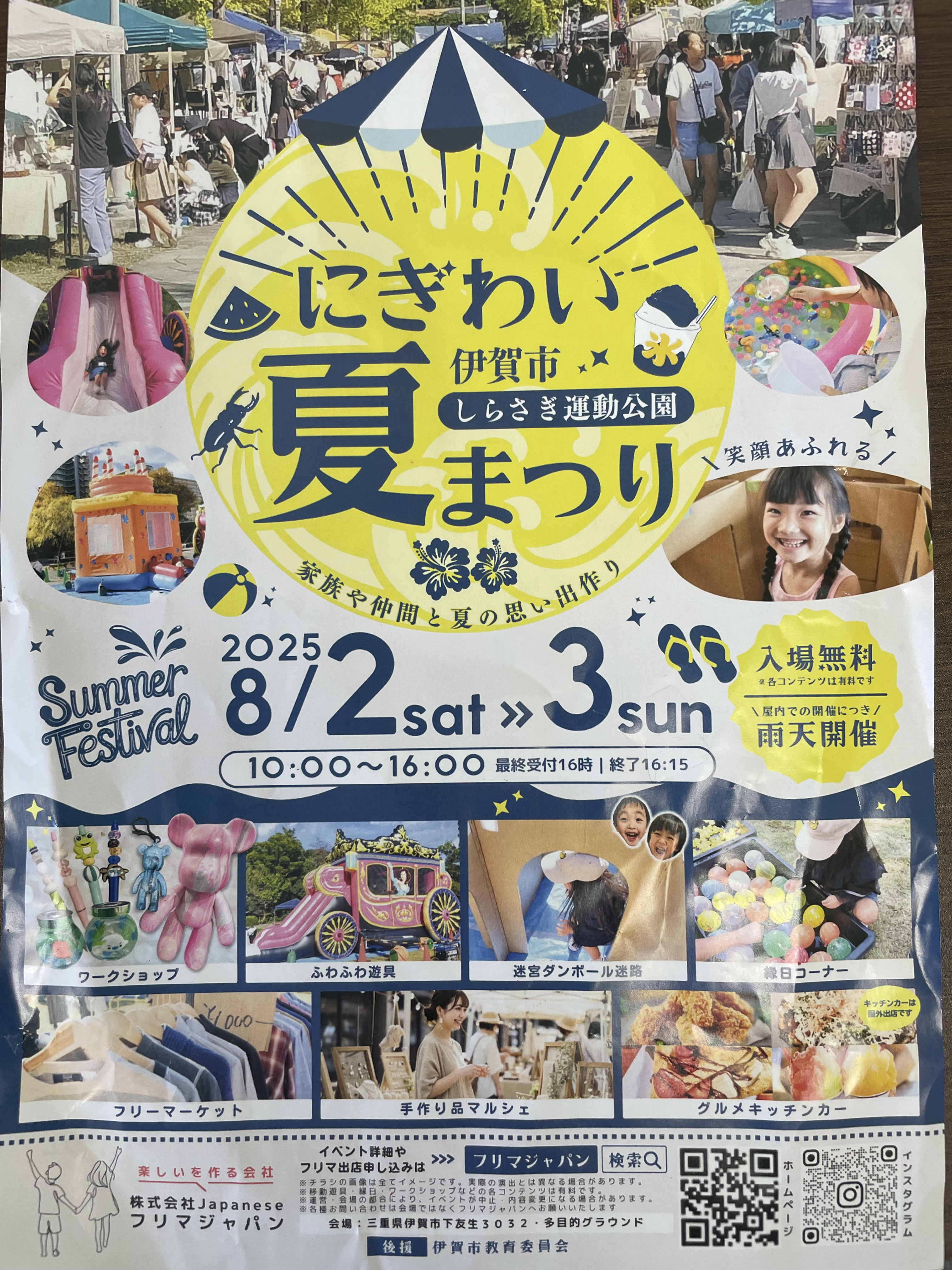 本日から伊賀市にぎわい夏まつりしらさぎ運動公園でレンタルケアHのブースを出展します。